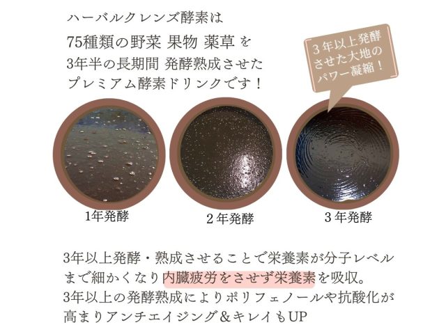75種類の野菜、果物、野草などを3年半長期発酵熟成させた本格的な酵素ドリンク